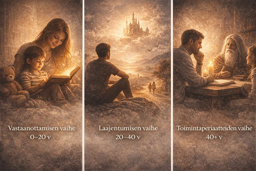 Lapsi ja nuori kääntyvät sisäänpäin ja tutkivat ajattelua, tunteita ja tahtoa. Mielikuvitus on tässä ratkaiseva: se rakentaa pohjan luovuudelle, ihmissuhteille ja myöhemmälle elämänvalinnalle.