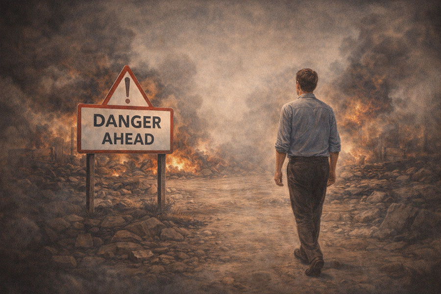 Ongelma nähdään, mutta siihen ei reagoida. Ajattelu pysähtyy ennen vastuuta. Ristiriidasta tulee arkea.